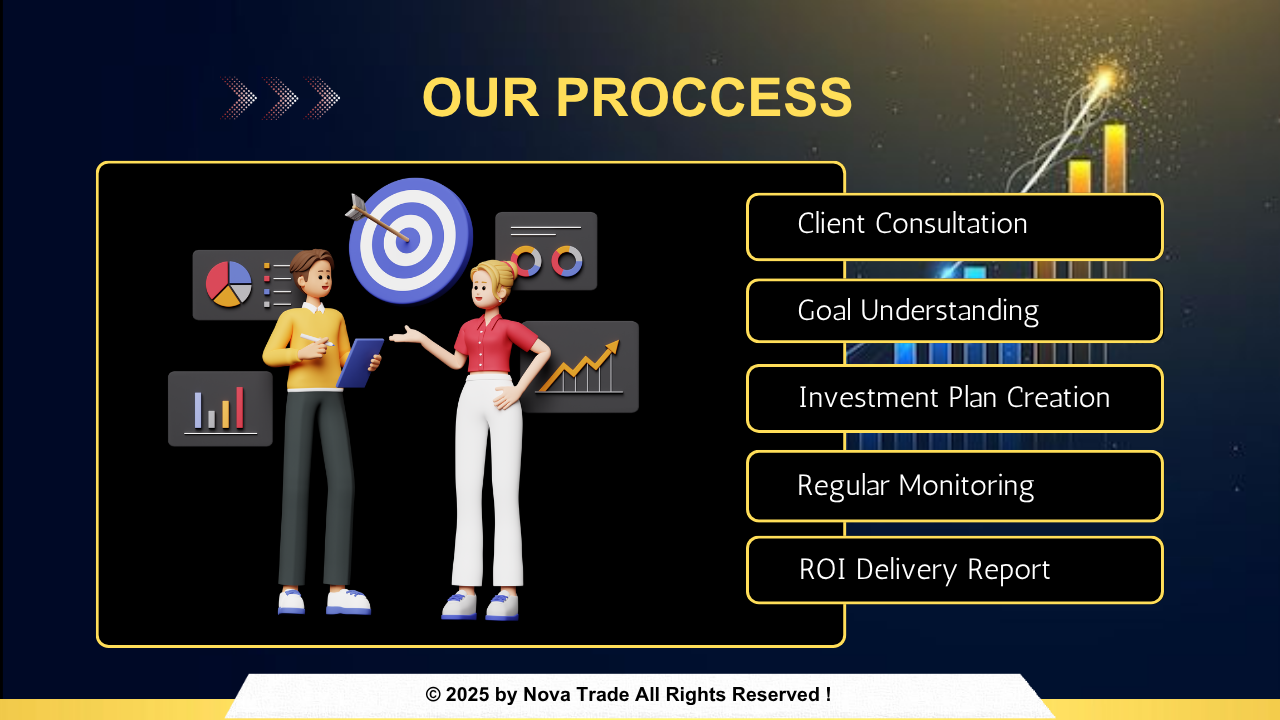 Welcome to Nova Trade — your trusted gateway to the world of digital finance. Nova Trade is a dynamic and forward-thinking company committed to delivering high-quality ROI-based solutions across diverse sectors. We specialize in offering strategic financial planning, investment consulting, and result-driven business services tailored to meet the evolving needs of our clients. Our core philosophy is rooted in trust, transparency, and performance. At Nova Trade we understand that every investment matters — that's why we focus on delivering measurable returns through smart strategies and expert insights. With a team of experienced professionals and a client-first approach, Nova Trade is dedicated to building long-term relationships, maximizing client value, and driving sustainable growth. Whether you're an individual investor or a growing business, we are here to guide you on the path to success. Your vision, our strategy — powered by performance.